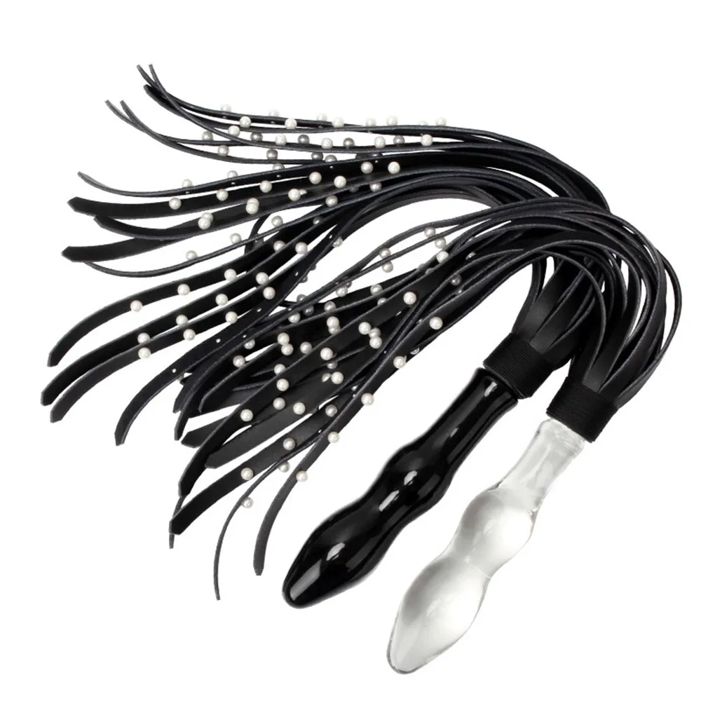 Best Quality Leather Pearl Whip And Glass Anal Plug Adult Games BDSM Flogger Whipping Slave Butt Plug Massager F
